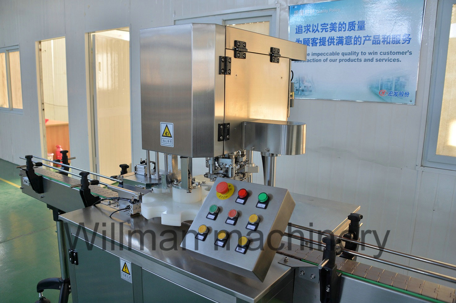Unmanned operation, full- automatic cover lowering and sealing. Such equipment must be the main stream equipment with the consistent increase of labor force price.